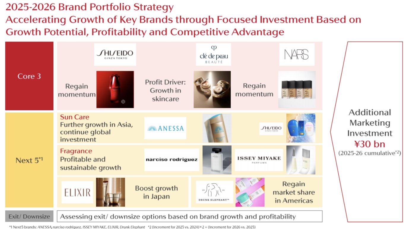 2024年底,资生堂集团启动“2025-2026行动计划”,以降本增效为核心目的,其中的优先事项包括:
