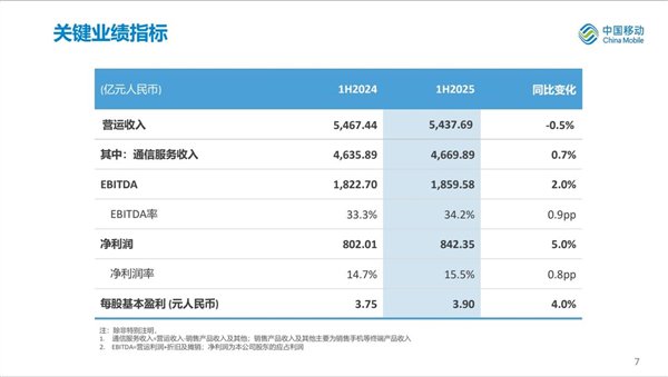 快科技8月7日消息,今日,中国移动发布2025年中期业绩报告。