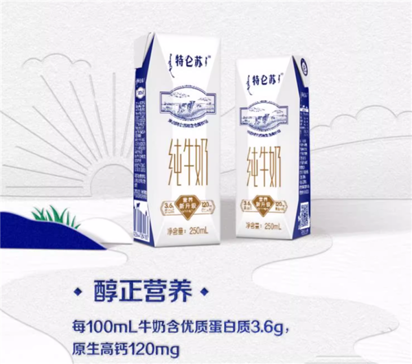 醇正营养:每100mL牛奶含优质蛋白质3.6g,原生高钙120mg;奶牛产自特仑苏专属牧场,拥有乳牛专属动物福利,快乐牛产好奶。