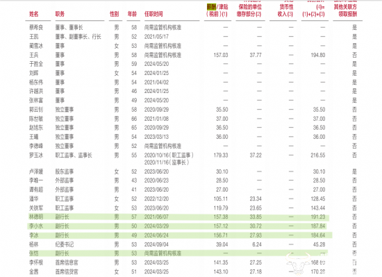 根据广发银行发布的2024年财报显示,在广发银行的四位副行长均为男性,其中年龄最小的为李冰,只有49岁,年龄最大的为林德明,57岁。三位副行长的薪酬分别为191.23万元、187.84万元以及184.64万元,不知张恺上任后能否达到。