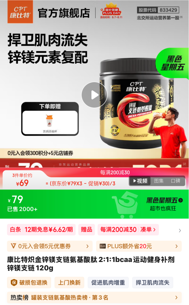 《经济参考报》记者注意到,上述产品在抖音和京东平台的康比特官方旗舰店均有售卖,售价为79元/罐。