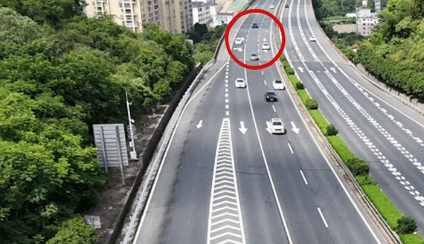 他们还公布了一起案例,8月5日,杭州公安高速交警在G25(杭新景)高速建德服务区附近,通过无人机高空巡查技术,成功捕捉到一辆违规实线变道的小型客车。