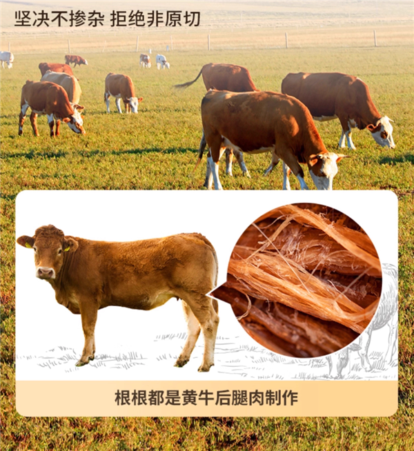 坚决不掺杂,拒绝非原切,根根都是黄牛后腿肉制作。