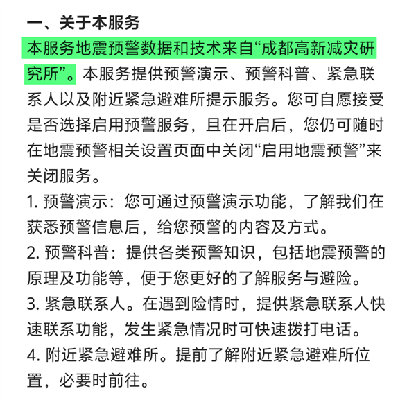vivo手机的地震预警服务声明