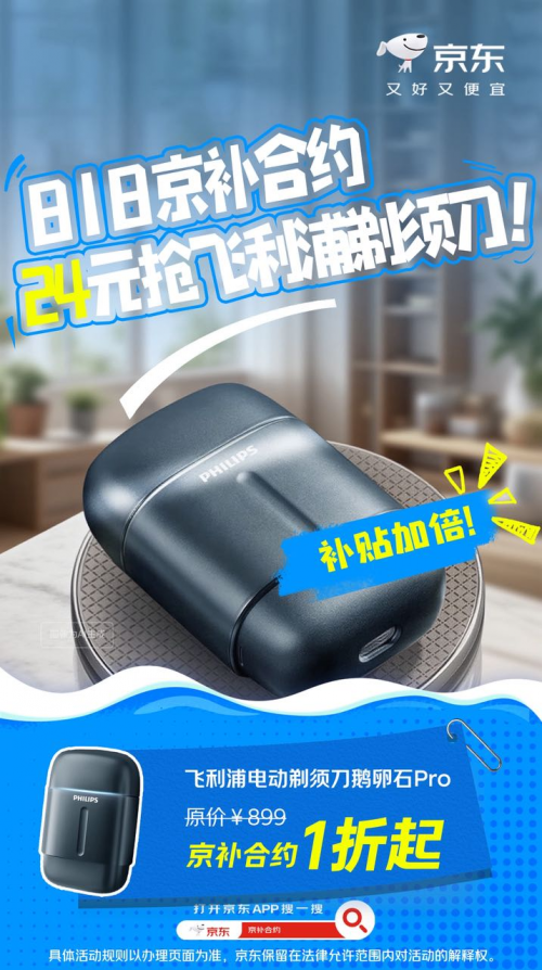 剃须刀是不少男性消费者的必备装备之一,可以入手飞利浦电动剃须刀鹅卵石Pro。飞利浦专利微提切技术、升级高端双轨刀网,剃得更干净;4D旋护式灵活刀头,搞定难剃部位;采用无线充电,同时续航时间长,尺寸小巧,出行也没问题。部分地区消费者通过“京补合约”入手飞利浦电动剃须刀鹅卵石Pro仅需24元。