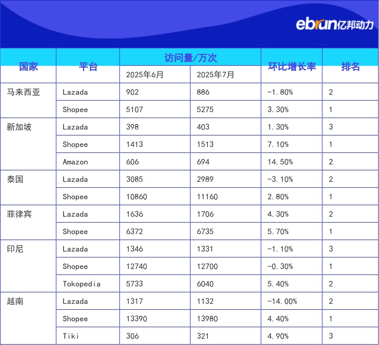 | 越南 | Lazada | 1317 | 1132 | -14.00% | 2 |