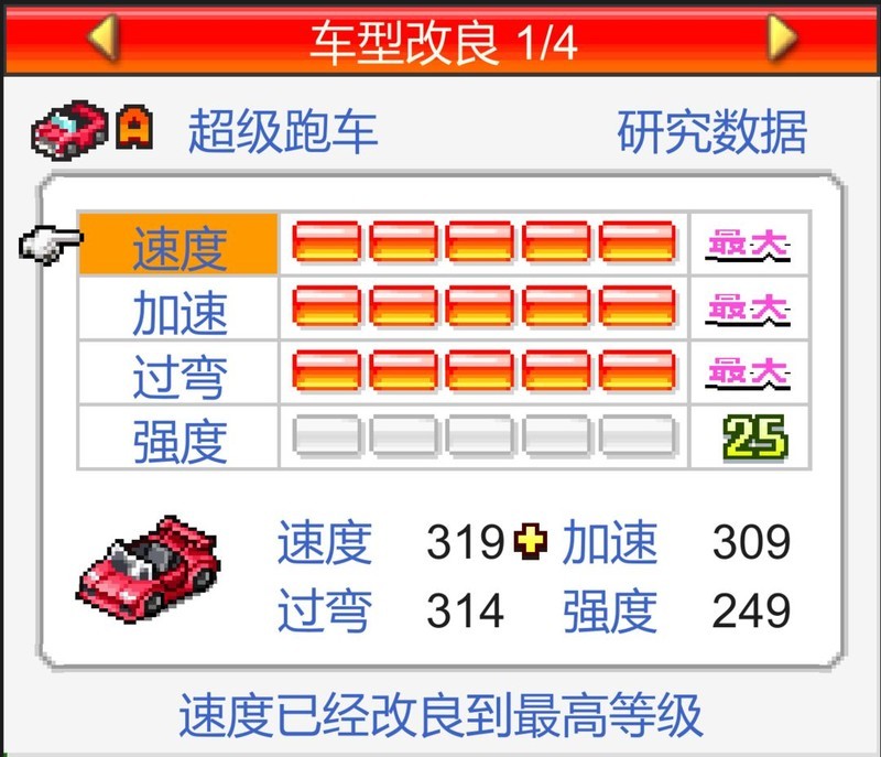 一周目建议快速通关,赛车类型几乎只能选超级车(原型车初始属性差距过大,不推荐)。