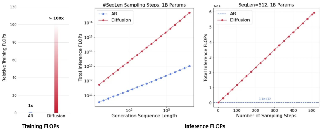 其二,DLMs 是「超密集模型」,它们在计算上的超高密度(每个任务需要更多的 FLOPs)直接转化为更强的智能。