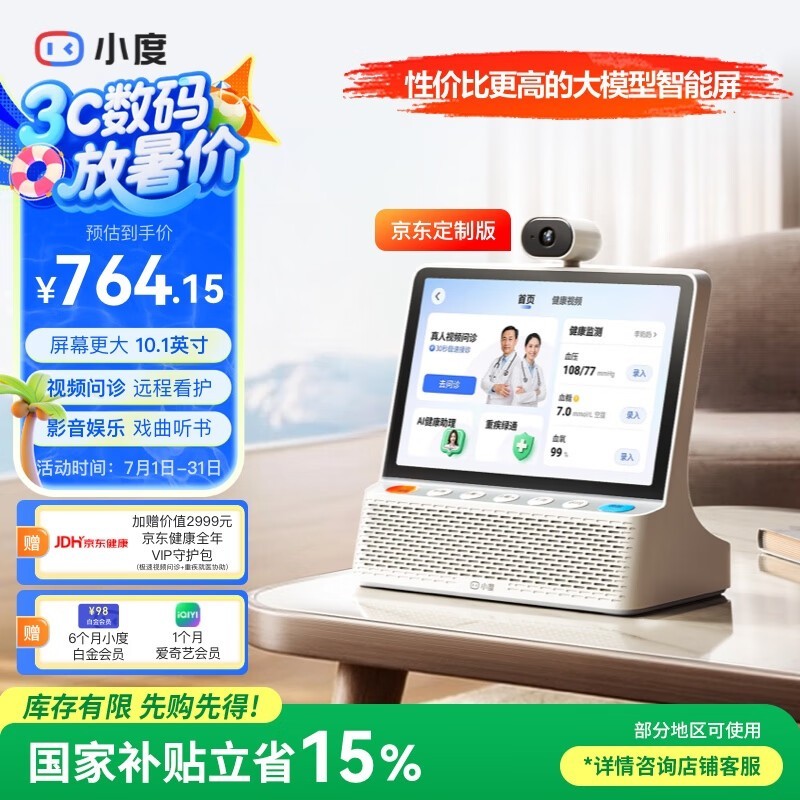 小度智能屏京东优惠,原价899元到手764元