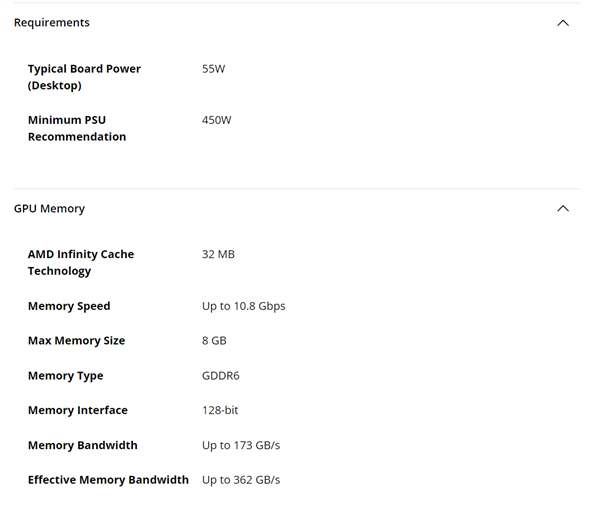 两款显卡均采用了AMD的Navi 33芯片,Navi 33是RDNA 3中最小的芯片,生产成本相对较低,因此AMD选择将其用于这两款入门级显卡。