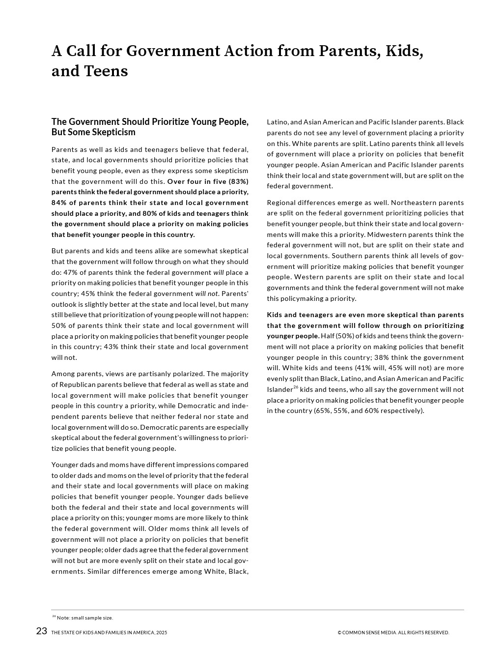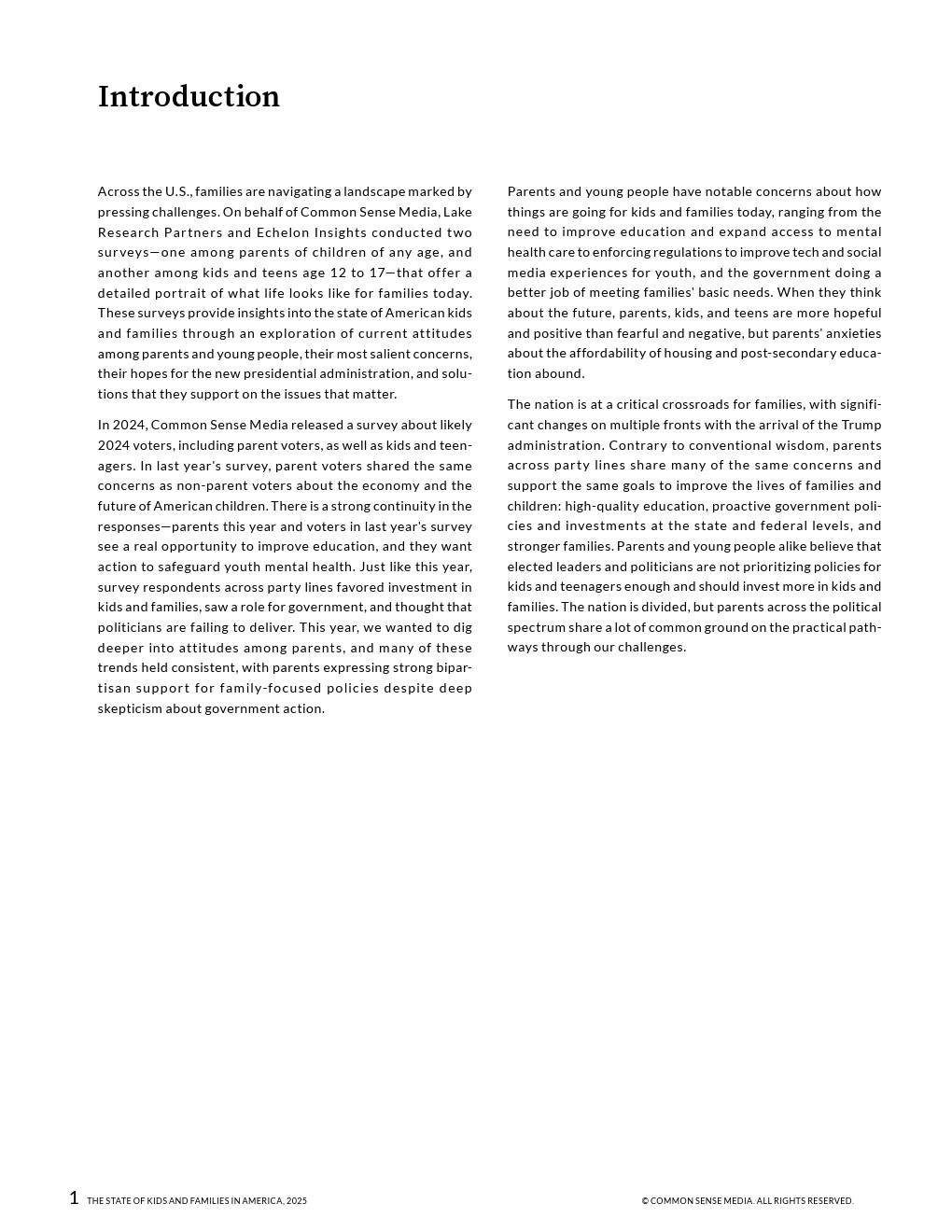 Common Sense发布了“2025年美国儿童和家庭状况”。全美各地的家庭正面临着一个充满紧迫挑战的社会环境。Common Sense委托Lake Research Partners和Echelon Insights开展的两项调查——一项针对各年龄段孩子的父母,另一项针对12至17岁的青少年——提供了当今美国家庭生活的详细图景。这些调查通过探究家长和年轻人态度、他们最关切的问题、对新一届政府的期望以及他们支持的关键议题解决方案,揭示了美国家庭与儿童的现状。