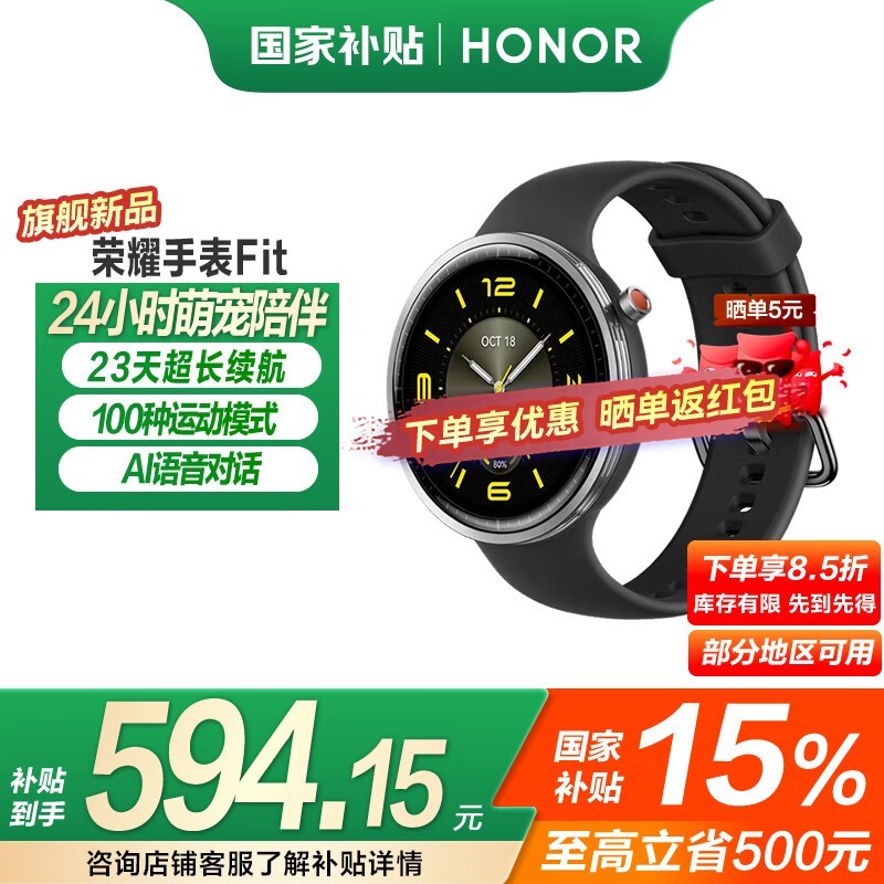 荣耀HONOR WATCH Fit智能手表雅致款幻夜黑限时优惠679元
