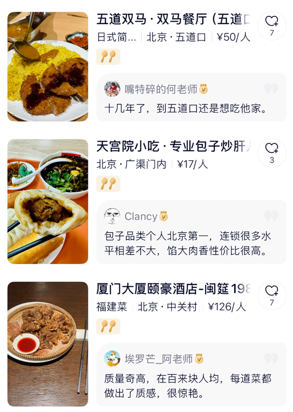 但除了这四家外,其他拿俩勺的选手,基本都是更平民化、更接地气的馆子。