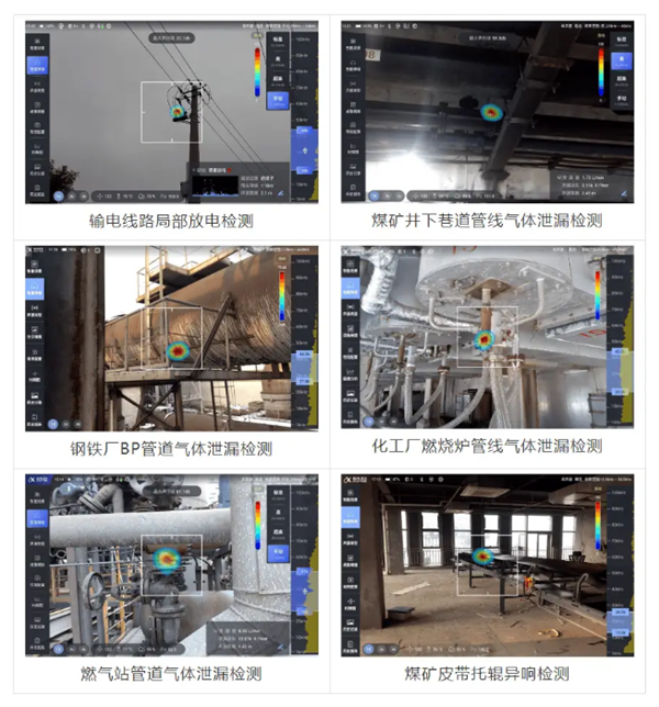 以AI声学成像仪为例,该产品集成了132路高精度麦克风阵列,结合先进的超声波声源定位算法,可在最远170米距离内精准识别局部放电、气体泄漏及设备异响等故障点,实现工业故障的可视化诊断。