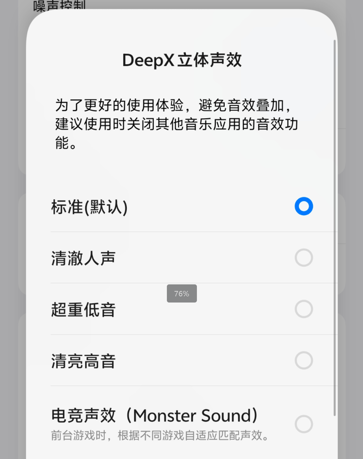 不仅如此,DeepX 3.0立体声效还为用户提供了多种音效选择,如超重低音、清澈人声和清亮高音等,满足不同类型的音乐需求。