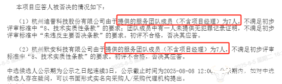 让人疑惑的是,在询比公告中明确要求“不少于8个驻场人员(不含项目经理)”的情况下,竟有两家企业在团队成员上出现问题,这么疏忽大意吗?