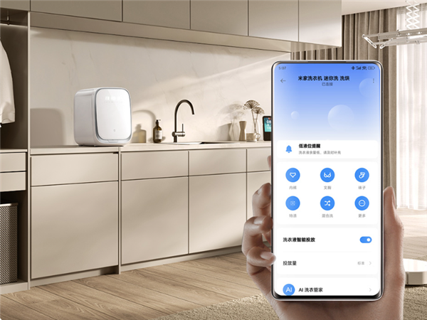 这款洗衣机主打医护级内衣健康洗,配备智能投放功能,能精准自动匹配洗涤剂用量,有效减少残留。