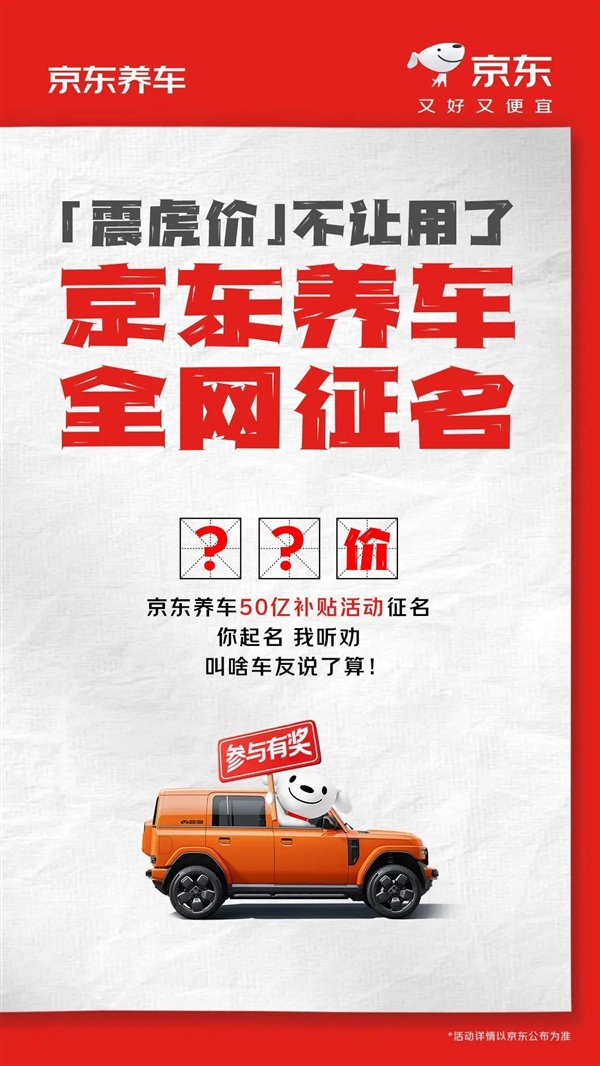 快科技8月11日消息,京东养车今日宣布全网征名结果揭晓:京东养车50亿补贴更名“震骨价”,口号为“低价震骨,补贴不‘唬’”。