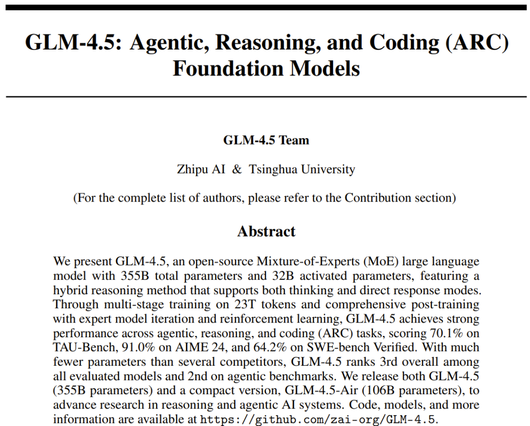 报告标题:GLM-4.5: Agentic, Reasoning, and Coding (ARC) Foundation Models