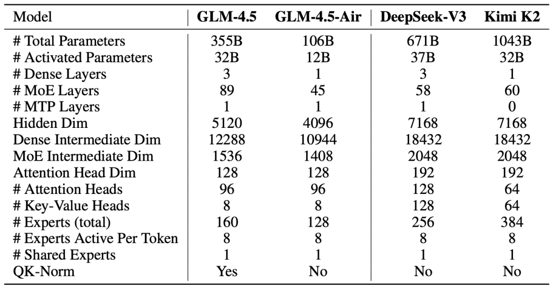 GLM-4.5 采用了 MoE(混合专家)架构,这种架构能够显著提升训练和推理时的计算效率。