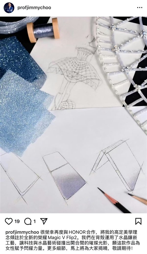 此前知名设计师Jimmy Choo在社交平台上公布了荣耀Magic V Flip2设计图,这款折叠屏将会带来全新的高定版,其后盖采用水晶镶嵌工艺,将科技和水晶艺术融合,打造出全新的璀璨光影,相信会得到更多女性消费者的喜欢。