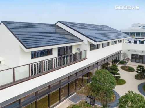 位于苏州总部的固德威智慧能源大厦就是一个示范性的光电建筑,它获得了中国绿建三星级评价,建筑综合节能率超过52%,装有BIPV、光伏车棚、阳光房等光伏系统,还有充电桩、热泵等负荷以及储能系统,大厦所用的20%电为自产的绿电,可再生能源综合利用率超过36%。