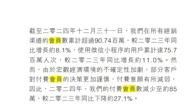 2024年底为85.4万人,较2023年减少31.7万人,降幅达27.1%。曾经愿意为 “品质”买单的核心用户,正在悄悄离开。