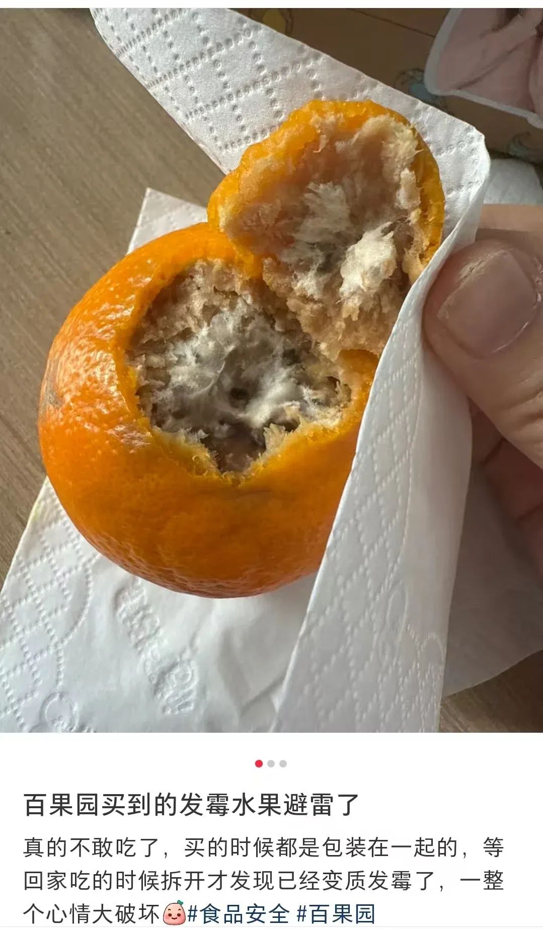 有人买的橘子,剥开外皮才发现果肉已经变质发霉;