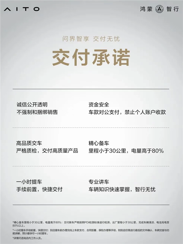 7、到用户中心提车时,看见用户中心展示“交付承诺”,请问这个具体是什么意思?