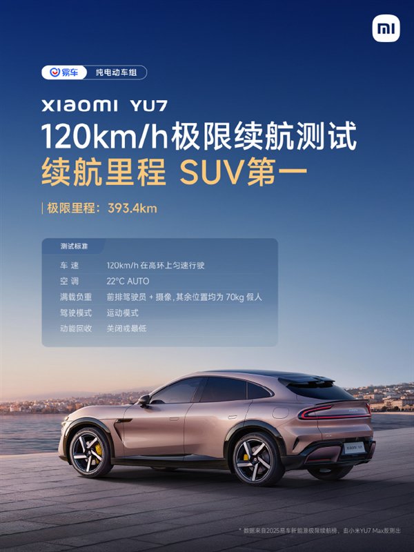 快科技8月12日消息,近日,易车2025新能源极限续航榜测试成绩新鲜出炉,在此次备受关注的纯电车极限续航测试中 ,小米旗下两款车型表现亮眼。
