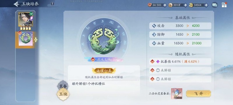 一品玉玦可通过s2升级成二品,解锁第二条随机属性并重置第一条属性。
