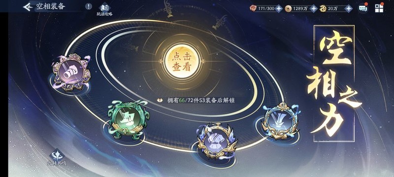 开启空相装备后,集齐72件s3(即18套)即可激活空相之力。
