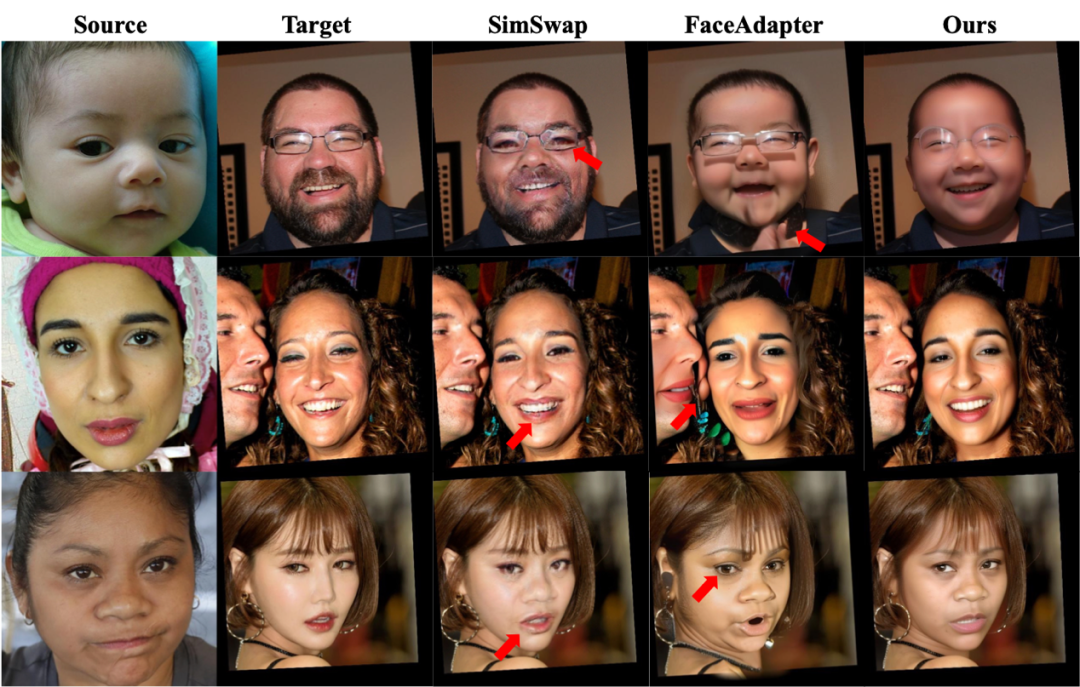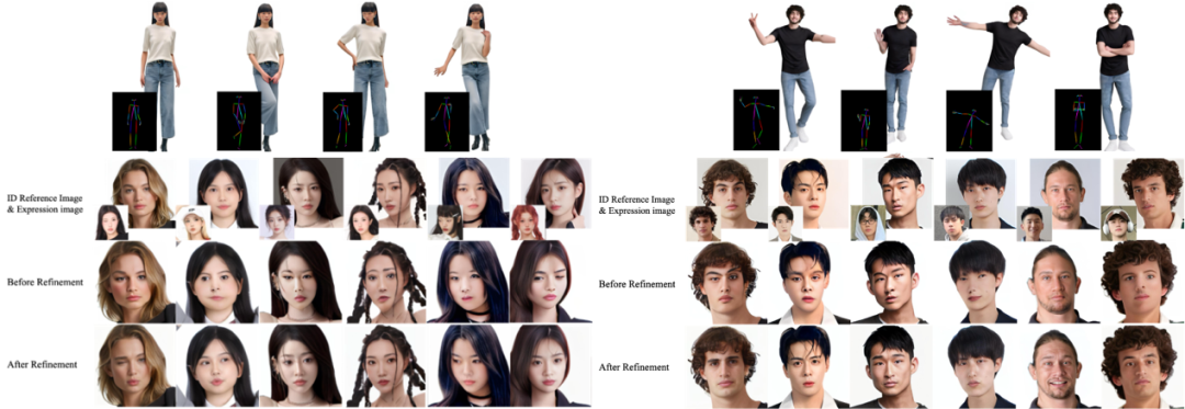 整体视频质量受损:当前最优秀的人像动画生成模型虽然在动画效果层面取得进展,但往往还需借助外部换脸后处理工具以改善关键帧细节。可惜,这类后处理虽能暂时修复细节,却往往损伤了整段视频在视觉上的统一性和自然度,导致画面出现割裂感和不连贯的现象。