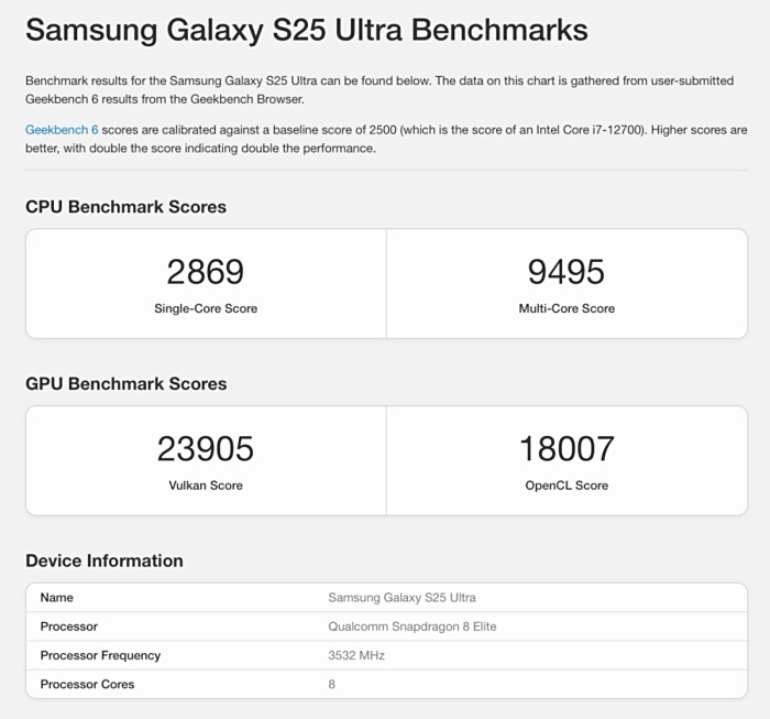 从测试环境来看,SM-S947U 工程机极有可能是在实验室条件下运行,包括外接散热或处于低温室环境,并且解锁了功耗限制,这使得其大核能够长时间保持在极高频率运行。需要注意的是,此次测试使用的是 Geekbench Corporate 版本,该版本常用于厂商内部的性能验证,不代表量产机的最终表现。而现售的 Galaxy S25 Ultra 则是在常温环境和量产功耗策略下进行测试,其成绩更接近用户的日常使用体验。