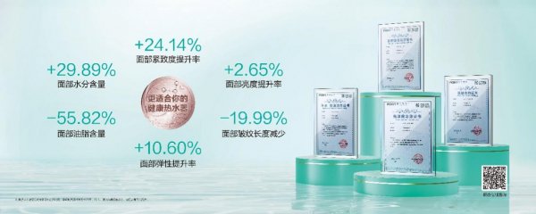 第三方测试数据显示,连续使用28天后,受试者面部水分含量提升29.89%,面部油脂含量降低55.82%,面部皱纹长度减少19.99%,面部紧致度提升24.14%、弹性提高10.6%、亮度提升2.65%。这意味着, 原本需要多步骤叠加的清洁与补水流程,如今可通过优化水质实现更高效的协同作用。
