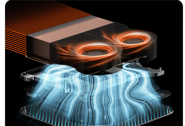 该机采用180×180×90.8毫米全金属机身,内置230W电源,并在底部与背部设计通风孔以提升散热效率,配合由双风扇、均热板和鳍片组成的MSC 2.0散热系统,可实现140W TDP性能释放。
