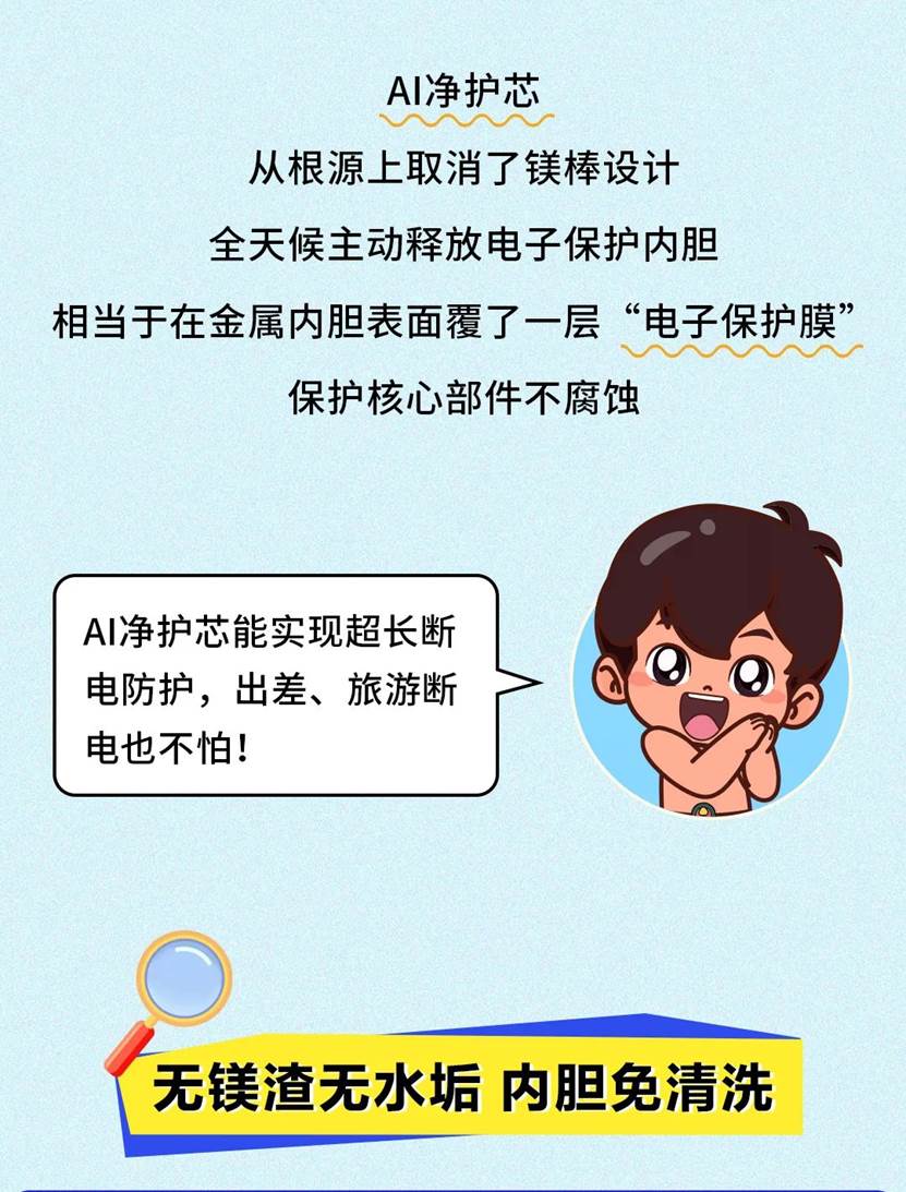 行业首创「无镁棒」金属内胆热水器:AI净护,健康净肤