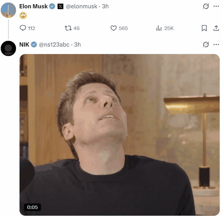 接下来,骂战升级,马斯克直呼奥特曼是骗子,还以浏览量为证据说明 X 并未刻意限制其对手的流量。奥特曼反唇相讥,要马斯克签署宣誓书来表明自己的清白。