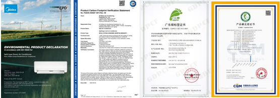 早在2022年,美的空调就率先发布了行业首个空调产品碳足迹+减碳量评估报告,全球首个空调环境产品声明(Environmental Product Declaration,EPD)。截至目前,美的空调已有5个品类、50余款重点机型获得权威第三方机构颁发的产品碳足迹证书。
