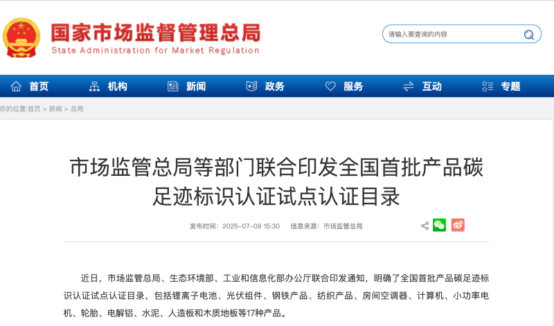 党的二十届三中全会《决定》强调“构建碳排放统计核算体系、产品碳标识认证制度、产品碳足迹管理体系”。市场监管总局等四部门联合印发的《关于公布产品碳足迹标识认证试点名单的通知》《产品碳足迹标识认证试点认证目录(第一批)》明确遴选广东省佛山市开展空调产品碳足迹标识认证试点工作,并将房间空调器等17种产品纳入全国首批认证试点目录范围。