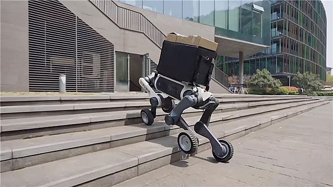 在物流配送途中,面临社区、园区内楼梯、斜坡等“最后1公里”拦路虎时,山猫M20轮足机器人能够凭借卓越的运动能力轻松应对,保障包裹准确送达。