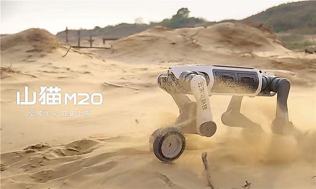 作为全球首款专为复杂地形和危险环境打造的中型行业应用轮足机器人,云深处科技的山猫M20轮足机器人通过AI运动控制算法,自主调整姿态,轻松应对坎坷山路、泥泞湿地、废墟障碍等极端环境,成为能够应对电力巡检、消防应急、物流配送等行业挑战的全能尖兵。
