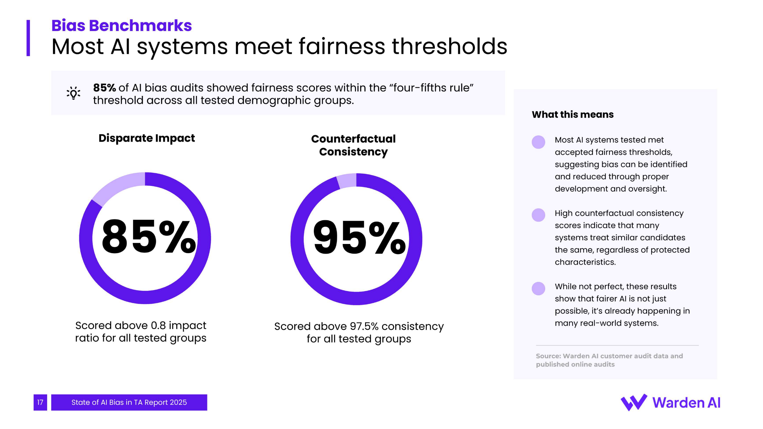 实测数据显示,85%的AI系统通过了行业通行的“四分之三规则”公平性测试,表明其在群体层面的决策未产生显著的歧视性影响。然而,仍有15%的系统未能达标,且不同模型间的公平性表现差距可高达40%。更值得关注的是,当前95%的偏见审计仅局限于性别与种族维度,对年龄、残障等其他受保护特征的潜在偏见缺乏有效监控。