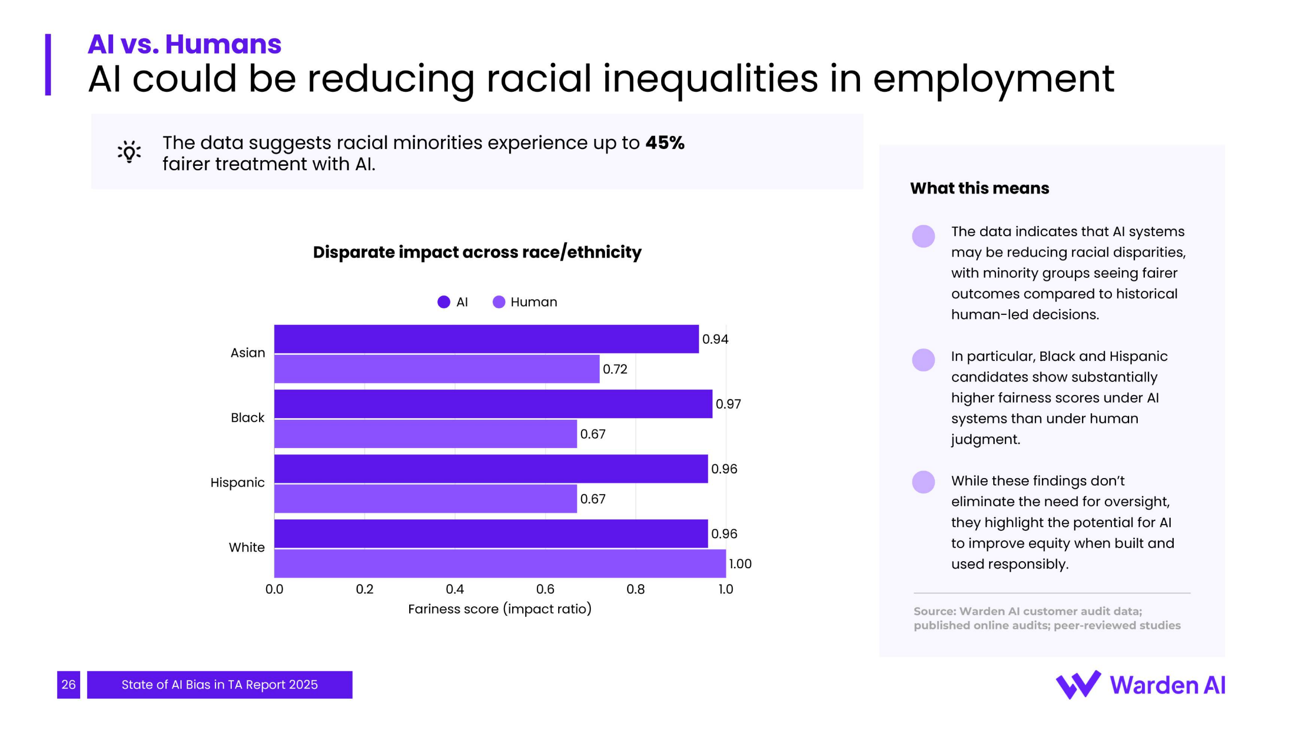 与普遍认知相反,数据表明AI在决策公平性上显著优于人工。相较于人工决策流程平均0.67的影响比,AI系统的平均影响比高达0.94。尤其针对少数族裔候选人,AI的应用使其通过率的公平性指标提升了约45%,这表明负责任的AI部署能够有效修正长期存在于人工决策中的系统性偏见。