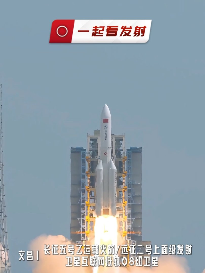 8 月 13 日消息,今日 14 时 43 分许,我国在文昌航天发射场使用长征五号乙运载火箭 / 远征二号上面级,成功将卫星互联网低轨 08 组卫星发射升空,卫星顺利进入预定轨道,发射任务获得圆满成功。