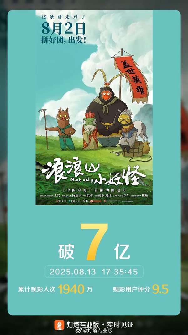 快科技8月14日消息,暑期档动画电影《浪浪山小妖怪》自上映以来,凭借精良的水墨画风与触动打工人内心的故事,收获了不少观众的喜爱。