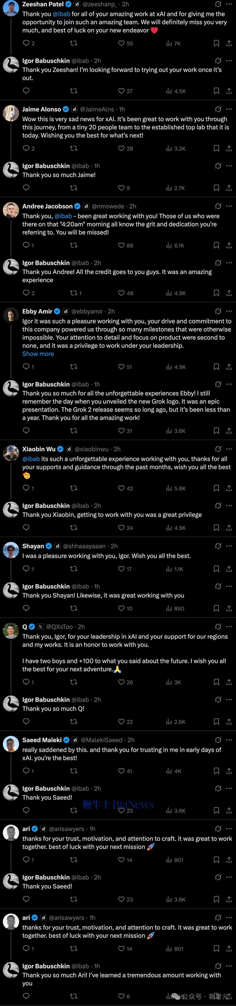 Igor长文下,一大波xAI员工与他告别,向他以往的贡献致敬。