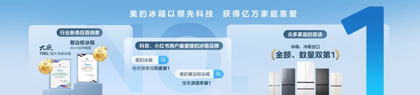 美的平嵌冰箱连续3年蝉联销冠,让机身与橱柜的间隙缩小至毫米级,实现"严丝合缝";美的首创的全球最薄冰箱餐边柜冰箱,以抖音第一的搜索渗透率打破了"冰箱只能放厨房"的固有认知,让家居空间利用更具想象力;同时,美的针对嵌入式大容量需求首创"大嵌"冰箱,轻松满足多人口家庭的囤货需求。
