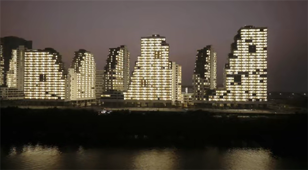 11栋企鹅公寓呈现模数化排列,象征着互联网企业的技术底色,组合构成四座山形的公寓楼组团,每栋公寓楼组团的中心都设置了绿色庭院。