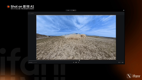 影翎 A1 能够录制最高 8K@30fps 规格的全景视频(可惜由于是早期工程样机,我们只体验到了 5.7K@50fps 的视频规格),然后在后期软件里自由调整视角,设置关键帧打点实现一些高难度的镜头运动。